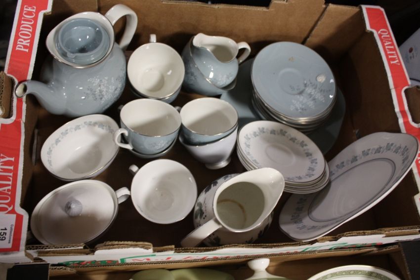 A TRAY OF ASSORTED ROYAL DOULTON BLUE AND WHITE CHINA
