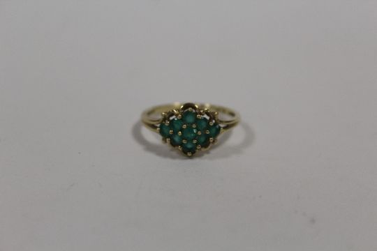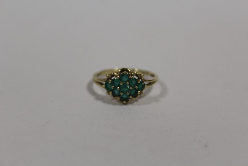 A 9K GOLD DRESS RING SET WITH GREEN STONES SIZE - Q APPROX WEIGHT - 2.3G
