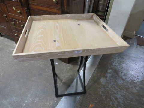 A MODERN LIMED STYLE OCCASIONAL TABLE WITH BLACK METAL BASE