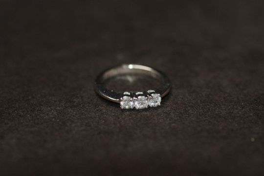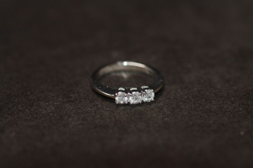 AN 18ct WHITE GOLD DIAMOND TRILOGY RING, RBC diamonds 0.50ct