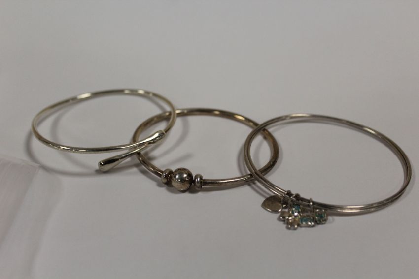THREE SILVER BANGLES APPROX WEIGHT - 28.5G