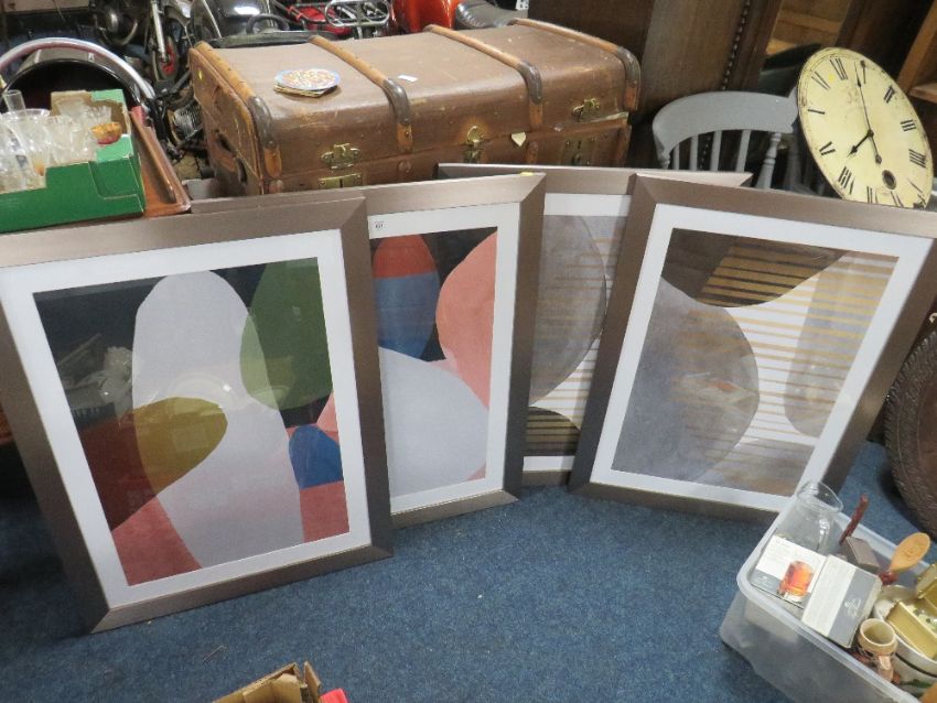 A SET OF FOUR MODERN FRAMED ABSTRACT PRINTS 90 X 70 cm (4)
