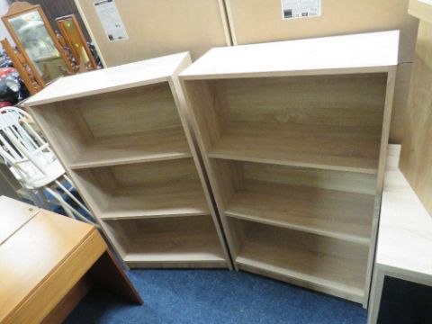 A PAIR OF MODERN OPEN FRONTED BOOKCASES, H 120 cm, W 70 cm (2) SLIGHT DAMAGE