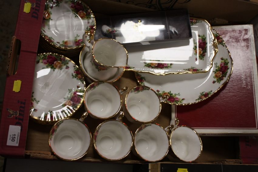 A TRAY OF ROYAL ALBERT OLD COUNTRY ROSES CHINA TO INCLUDE TRIOS