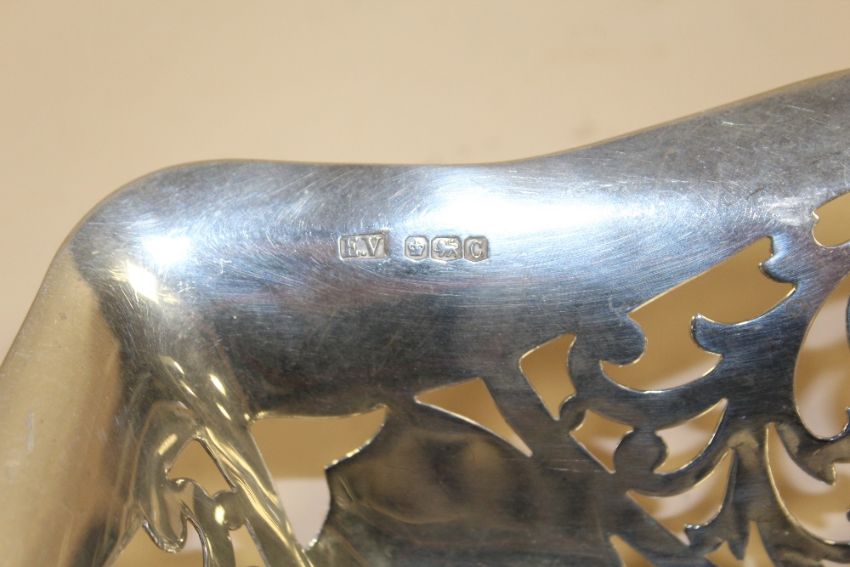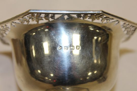 A LARGE HALLMARKED SILVER PIERCED TRAY WIDTH - 29CM APPROX, TOGETHER WITH A HALLMARKED SILVER FOOTED BOWL. COMBINE WEIGHT - 510.2G APPROX