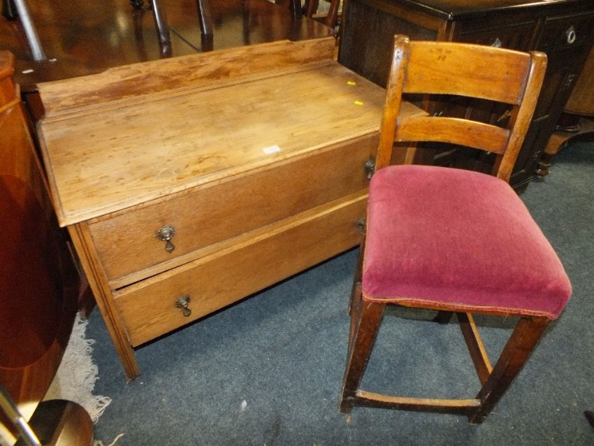 A VINTAGE OAK 2 DRAWER CHEST AND A STOOL (2)