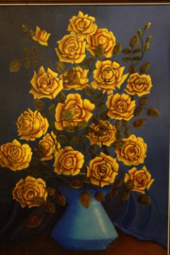 A FRAMED STILL LIFE OIL ON BOARD DEPICTING YELLOW ROSES IN A VASE SIGNED J W GITTINGS