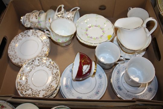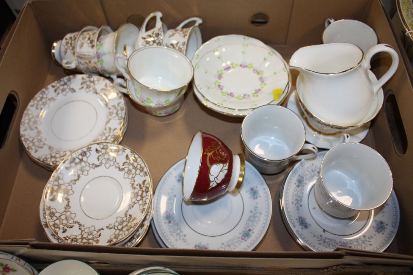 TWO TRAYS OF ASSORTED CHINA TO INCLUDE COLCLOUGH, ADDERLEY, MAYFAIR ETC.
