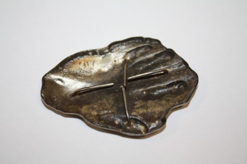 A CONTINENTAL 800 SILVER BROOCH IN THE FORM OF A HAND MARKED DALI