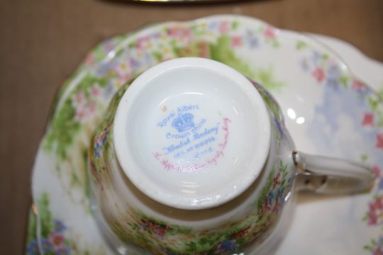 A TRAY OF ROYAL ALBERT CROWN CHINA 'KENTISH ROCKERY' TO INCLUDE A TEAPOT, TRIOS ETC.