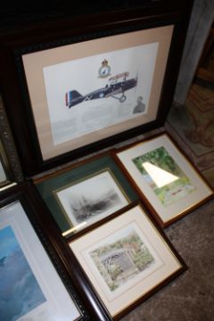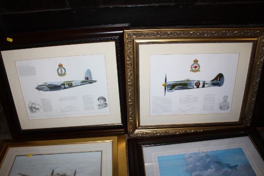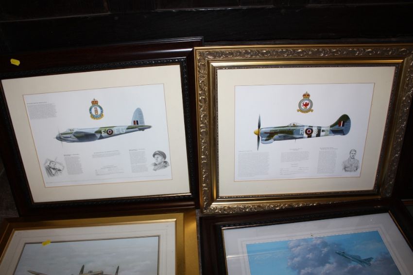A COLLECTION OF RAF INTEREST AEROPLANE PRINTS TOGETHER WITH A PRINT OF IRONBRIDGE (8)