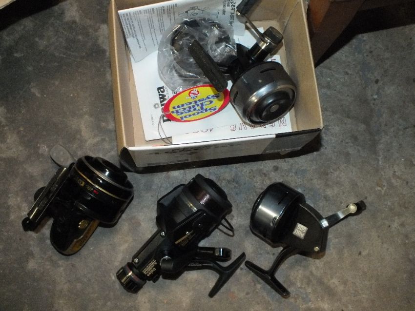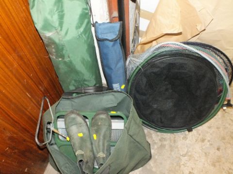 A SELECTION OF FISHING EQUIPMENT INCLUDING NETS, SPOOLS, REELS ETC TO INCLUDE ABU GARCIA AND DAIWA EXAMPLES
