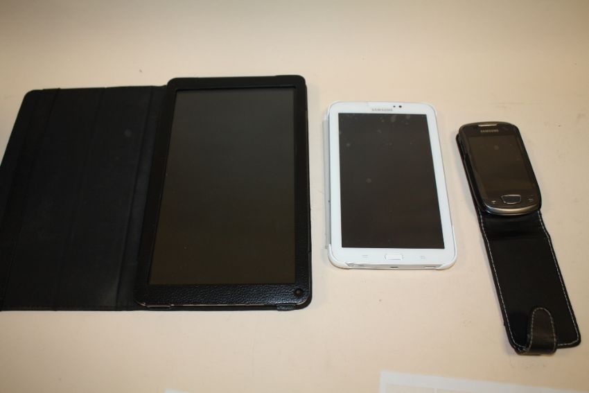 A FUSION 5 TABLET TOGETHER WITH A SAMSUNG GALAXY TAB 3 AND A SAMSUNG PHONE H/C