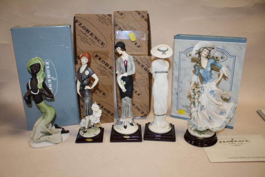 A COLLECTION OF BOXED CAPODIMONTE FLORENCE GIUSEPPE ARMANI LADY FIGURES WITH CERTIFICATES TOGETHER WITH A FLORENCE GENERAL CATALOGUE