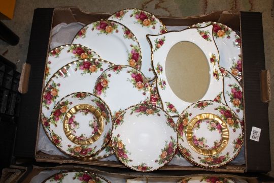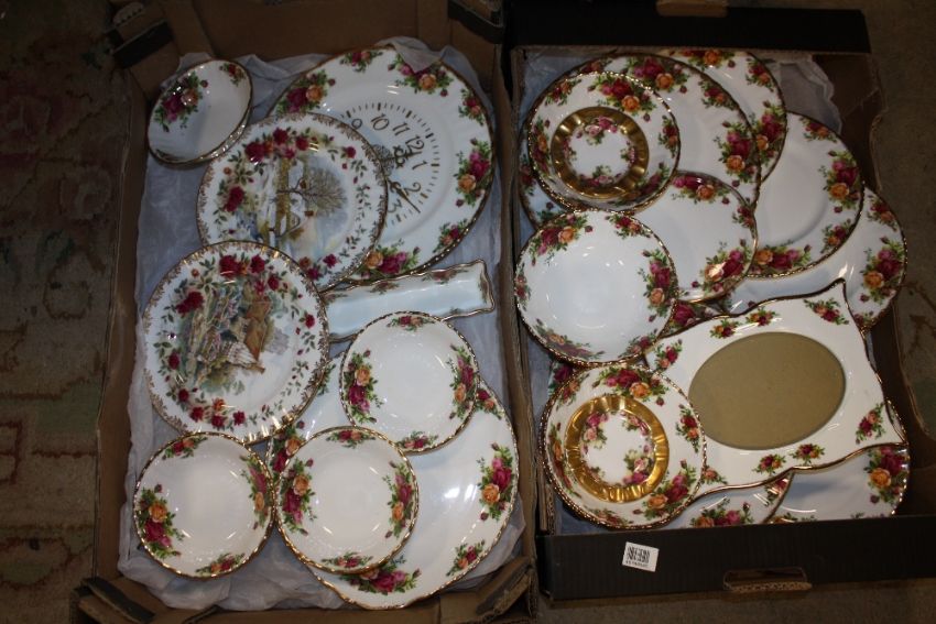 TWO TRAYS OF ROYAL ALBERT OLD COUNTRY ROSES CHINA TO INCLUDE CLOCKS, PLATES ETC