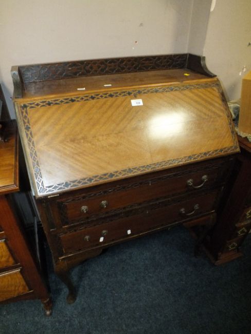 AN EARLY 20TH CENTURY MAHOGANY BUREAU WITH CARVED DETAIL H-102 CM W-75 CM