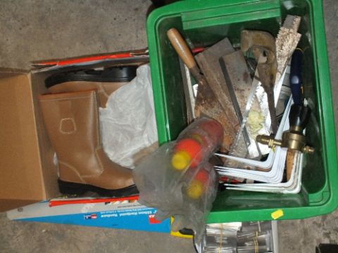 A SELECTION OF TOOLS AND PARTS ETC TO INCLUDE PLANES, ANGLE GRINDERS, SACK TRUCK AND FOOTWEAR