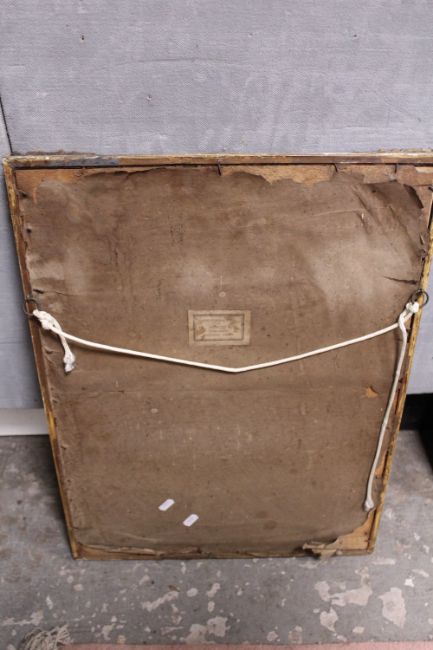 AN ANTIQUE GILT FRAMED AND GLAZED MIXED MEDIA OVER PRINT BASED FULL LENGTH PORTRAIT STUDY OF A LADY IN CLASSICAL DRESS