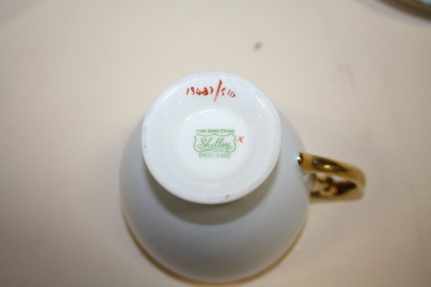 A SHELLEY 13487/510 PATTERN BLUE AND GILT SIX PERSON COFFEE SET