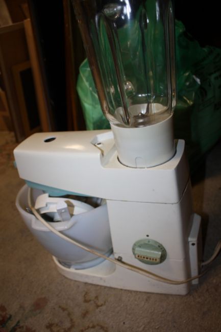 A LARGE BOX OF ASSORTED LAMPS TO INCLUDE TREEN AND BRASS EXAMPLES, TOGETHER WITH A KENWOOD STAND MIXER