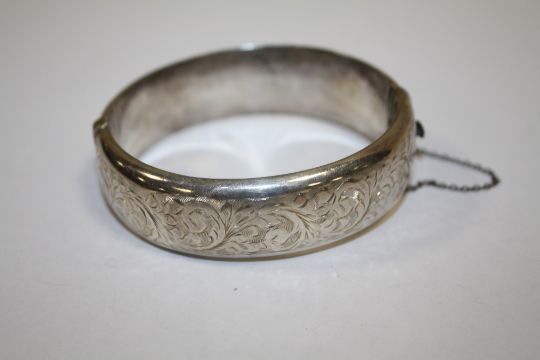 A VINTAGE HALLMARKED SILVER ENGRAVED BANGLE