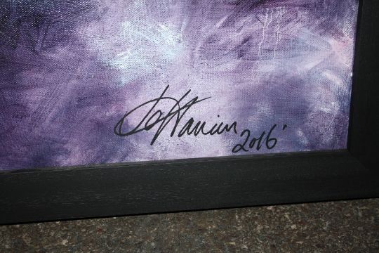 AN UNUSUAL LARGE FRAMED MODERN OIL ON CANVAS ENTITLED 'FROM THE DEPTH OF THE OCEAN WE CRAWLED' OF A TATTOOED CHARLES DARWIN BY JO HARRISON AND HANUMANTRA WITH CERTIFICATES VERSO