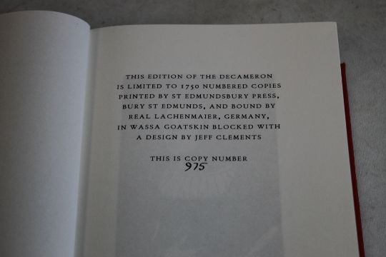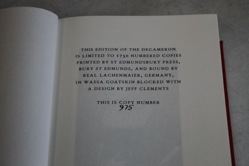 FOLIO SOCIETY - 'THE DECAMERON OF GIOVANNI BOCCACCIO', limited edition 975/1750, with booklet in fitted box, 2007