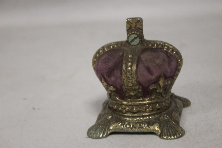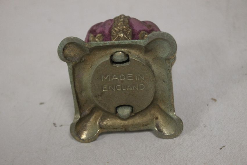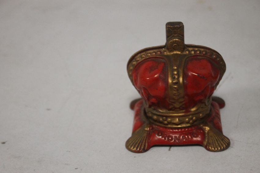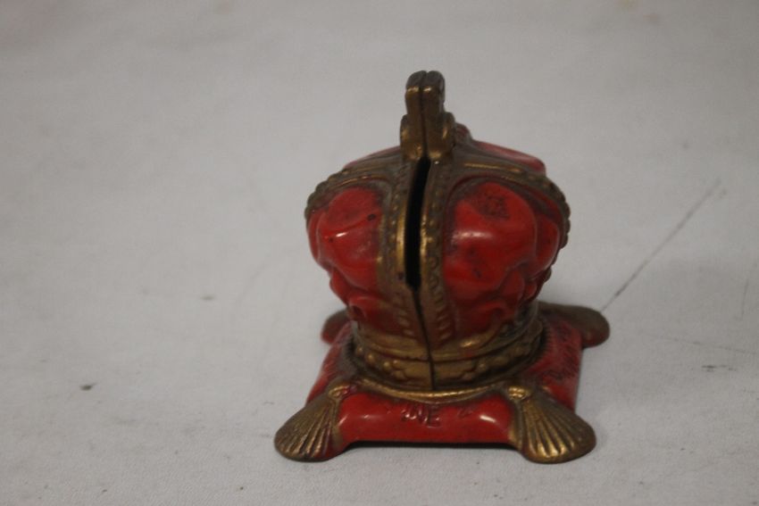 AN ART NOUVEAU "'NAUGHTY NINETIES"' CAST IRON SEMI EROTIC PIN DISH, together with two 1953 crown money boxes