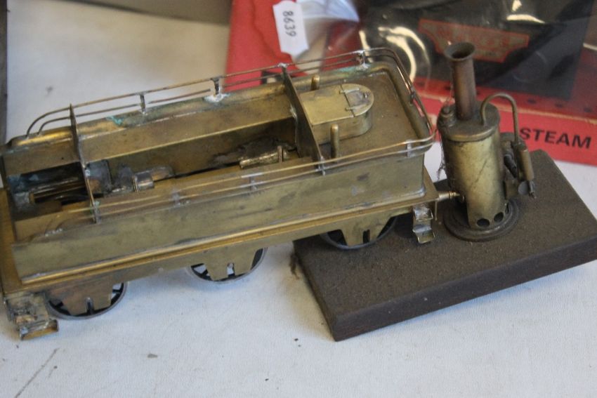 BOX CONTAINING BOXED MAMOD MINOR TWO STEAM ENGINE, other unboxed steam engine parts, copper and brass steam locomotive model etc.