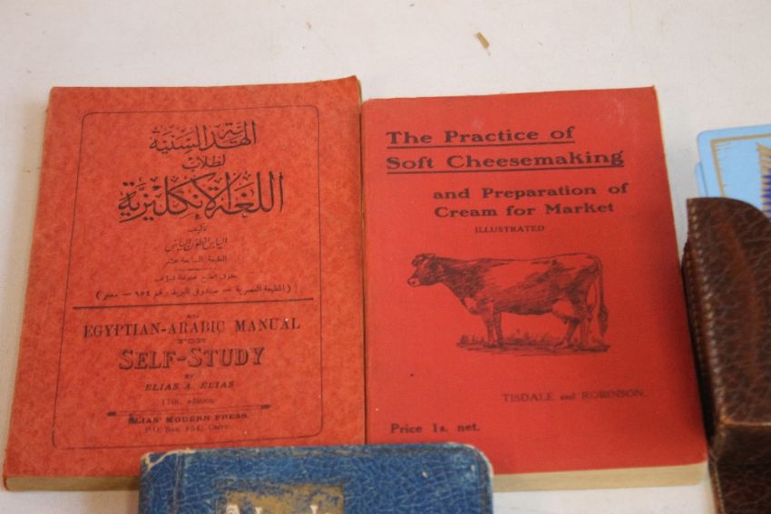 A TRAY OF COLLECTABLES AND EPHEMERA ETC, to include an Egyptian Arabic manual, playing cards etc