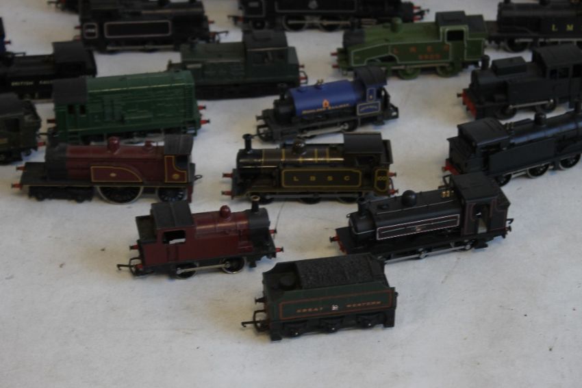 NINETEEN OO GAUGE TANK/SHUNTER UNITS. by Wrenn, Mainline, Airfix, Hornby etc., plus two tenders together with two boxes of track.