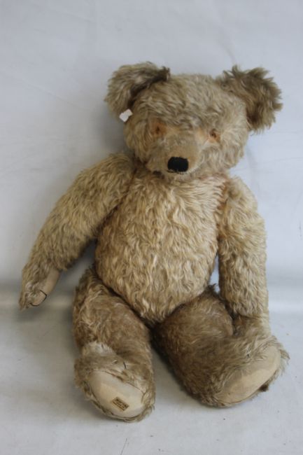 A VINTAGE MERRYTHOUGHT TEDDY BEAR A/F (missing eyes), approx. 68 cm