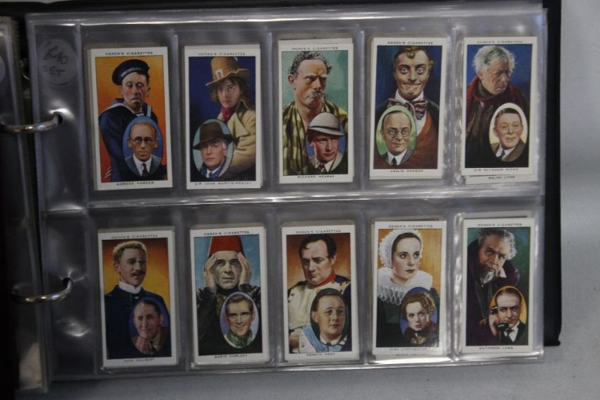 FOUR FOLDERS CONTAINING SETS OF COLLECTORS CARDS BY WD AND HO WILLS, JOHN PLAYER, OGDEN, ABC, LAMBERTS, SENIOR SERVICE, CAVANDERS LTD ETC., including rare sets Ogden- construction of Railway Trains, Lyons made famous locomotives, Daily ice cream- modern British locomotives, John Player-Cycling, ABC-Soldiers, ABC scenes from films, Ogdens- actors natural and character.