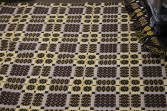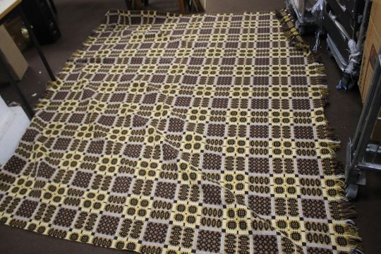 A VINTAGE WELSH WOOL BLANKET, WITH "'WELSH WOOLLENS"' LABEL 242 cm x 200 cm. Condition Report:  In very good condition, no obvious stains or damage. No mill name.