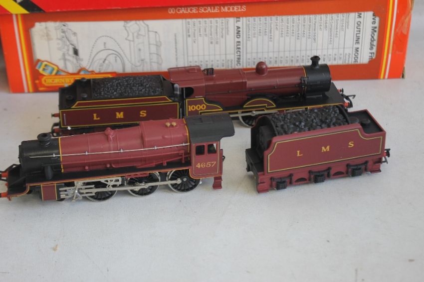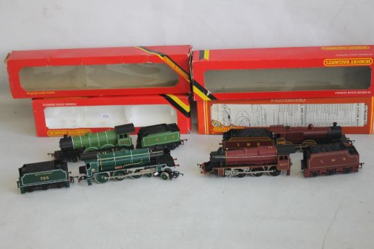 FOUR BOXED HORNBY STEAM LOCOMOTIVES AND TENDERS, including Sir Dinadan (4-6-0), LMS Class 4P (4-4-0) with smoke.