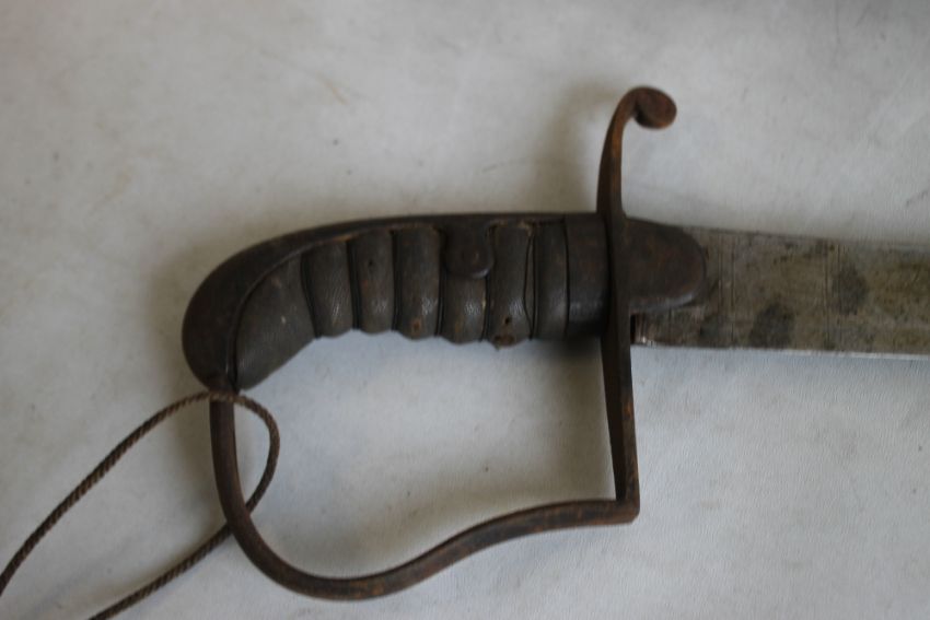 A 1796 PATTERN LIGHT CAVALRY SABRE, with the blade engraved with a fruit and foliage design with a trophy of arms in steel scabbard