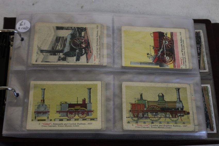 SIX FOLDERS CONTAINING SETS OF COLLECTORS CARDS BY PARK DRIVE, CRAVEN BLACK, GP TEA, MIRANDA, PRIMROSE CONFECTION, ABC, CHURCHMAN, BARRATT AND CO, JOHN PLAYER ETC. includes rare sets Godfrey Phillips- 1934 screen stars, Churchman- Railway working, John Player- Napoleon.
