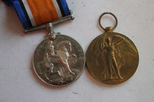 A WWI BRITISH WAR MEDAL AND A VICTORY MEDAL PAIR, in original card box named P.M Pinder R.E and a small quantity of related ephemera
