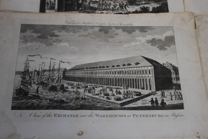 TWENTY ONE ENGRAVINGS FROM 'MIDDLETON'S COMPLETE SYSTEM OF GEOGRAPHY' c.1778 to include 'A View of the City of Paris', 'View of the Bastile St. Anthony's gate and part of the suburbs of Paris', 'A View of an Italian Regatta or Gondola Race on the Grand Canal at Venice', 'Ruins of Rome', 'A View of Madrid the Capital of Spain', 'A perspective view of the City of Dublin, from Phoenix Park', 'Russian Sledges &c. used for carrying Goods Firing and other Commodities in Winter', 'Winter Amusements in Holland', 'A Spanish Bull Fight', 'The Tarantula' etc., paper size approx. 36 x 24 cm (21)