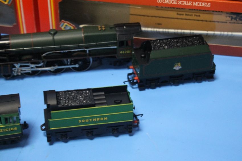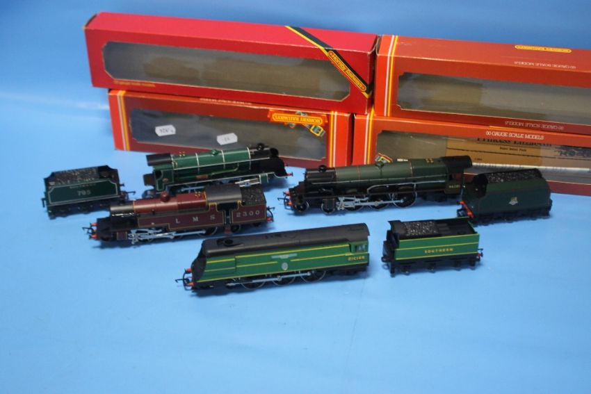 FOUR BOXED HORNBY LOCOMOTIVES, to include Battle of Britain class Spitfire (4-6-2), BR class 8p Princess Elizabeth (4-6-2), Sir Dinidan (4-6-0), LMS class 4p Tank (2-6-4)