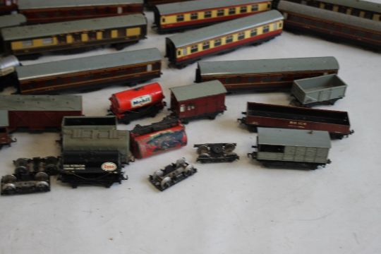 A BOX CONTAINING 22 DUBLO RAILWAY CARRIAGES 'OO GAUGE', and twenty pieces of Hornby Rolling Stock.