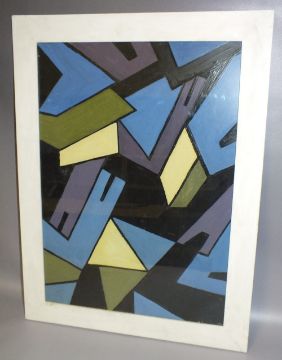 DAVID BARNES (XX-XXI). Welsh school, abstract composition, signed verso, oil on board, framed and glazed, 69 x 49 cm