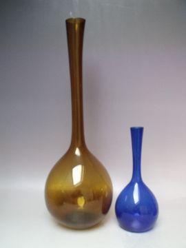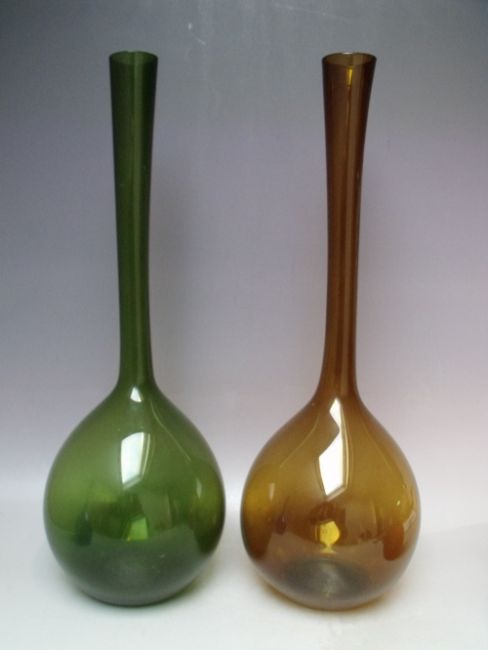 ARTHUR PERCY FOR GULLASKRUF - FOUR COLOURED SWEDISH ART GLASS VASES, comprising two large onion shaped vases and two similar smaller examples, tallest H 49.5 cm (4)