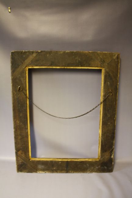 A MID 17TH CENTURY LOUIS XIV DECORATIVE GILT PICTURE FRAME, frame W 10 cm, framed rebate 58 x 45 cm