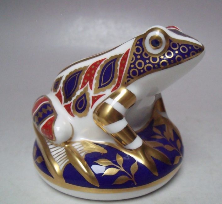 A ROYAL CROWN DERBY 'FROG' PAPERWEIGHT, gold stopper, boxed