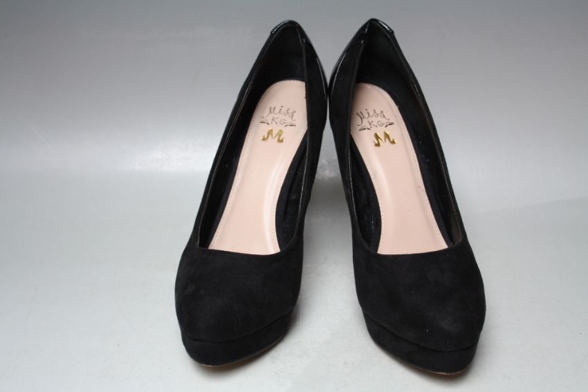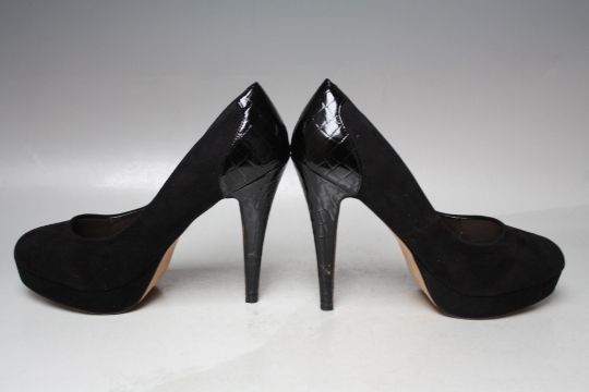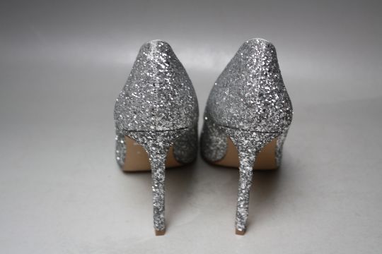 A PAIR OF CARVELA SILVER 'GLITTER' EFFECT COURT SHOES EU SIZE 41, together with a pair of Miss Kurt Geiger 'Ariel' black suedette court shoes, EU size 41, boxed (2)