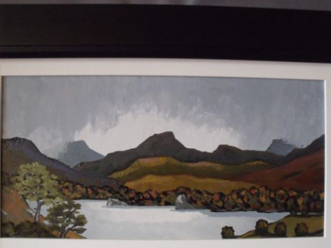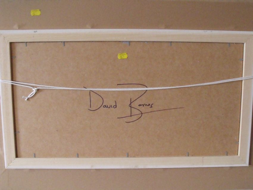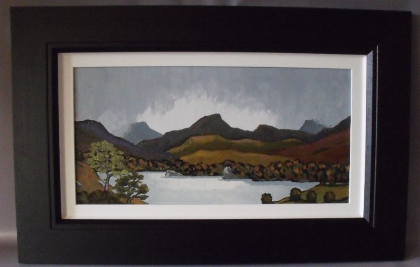 DAVID BARNES (XX-XXI). Welsh school, impressionist stormy mountainous lake scene, signed verso, acrylic on board, framed, 29 x 59 cm
