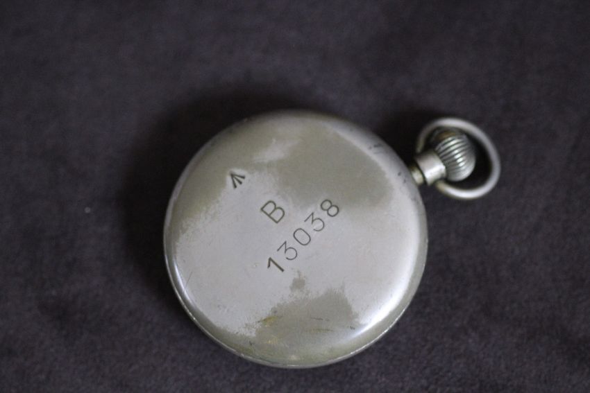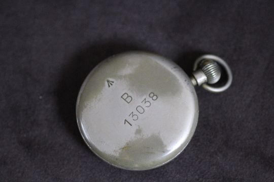 ROLEX - A MILITARY BLACK DIAL OPEN FACED MANUAL WIND POCKET WATCH, AI0068, stamped to reverse B 13038, Dia 5 cm