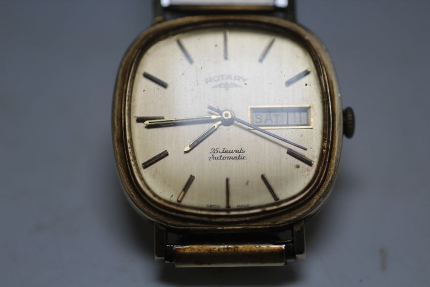 A ROTARY 25 JEWEL AUTOMATIC DAY DATE WRIST WATCH, W 3.5 cm