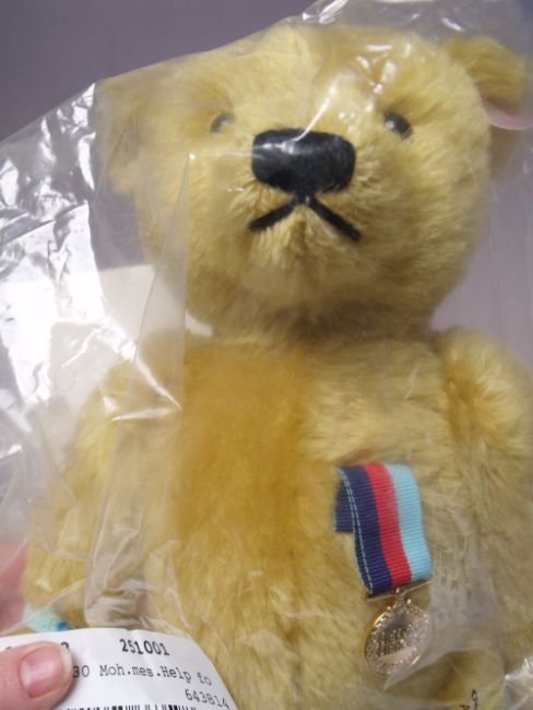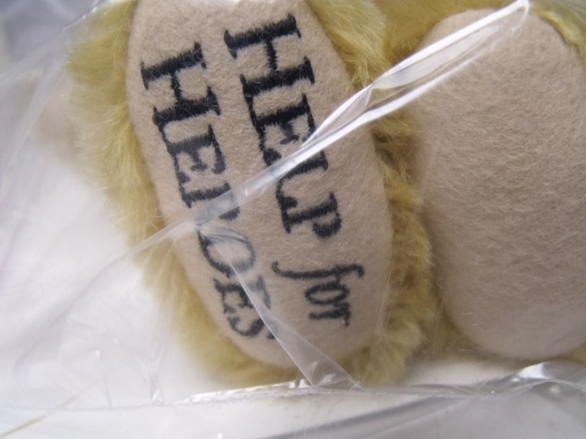 A STEIFF 'HELP FOR HEROES' TEDDY BEAR, EAN 663598, blond, limited edition with certificate of authenticity, H 29.5 cm, in sealed, unopened packaging, boxed.